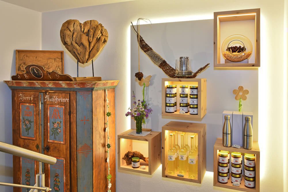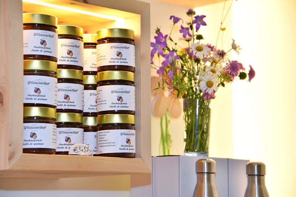 Während Ihres Bauernhofurlaubs mit Frühstück stehen Ihnen zahlreiche Hofprodukte (Eier, Speck, Fruchtsaft und Fruchtaufstrich) zum Kauf zur Verfügung. Darüber hinaus gibt es für Sie auf Vorbestellung Halbmittag, eine zünftige Marende, bestehend aus zahlreichen hofeigenen Produkten oder eine Jausenbox.